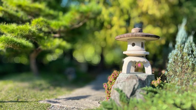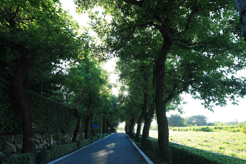 從山門進入,直直的小徑,兩旁楓樹密葉蔽日,左邊用樹蘭及桂花種成圍籬香氣撲鼻,右側的溝流水聲潺潺,構成一條意境深遠的綠色隧道。