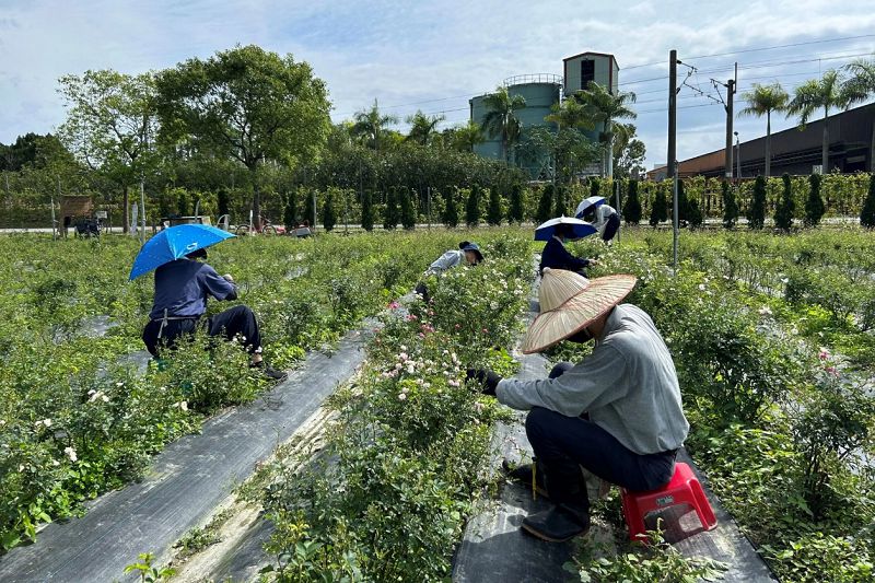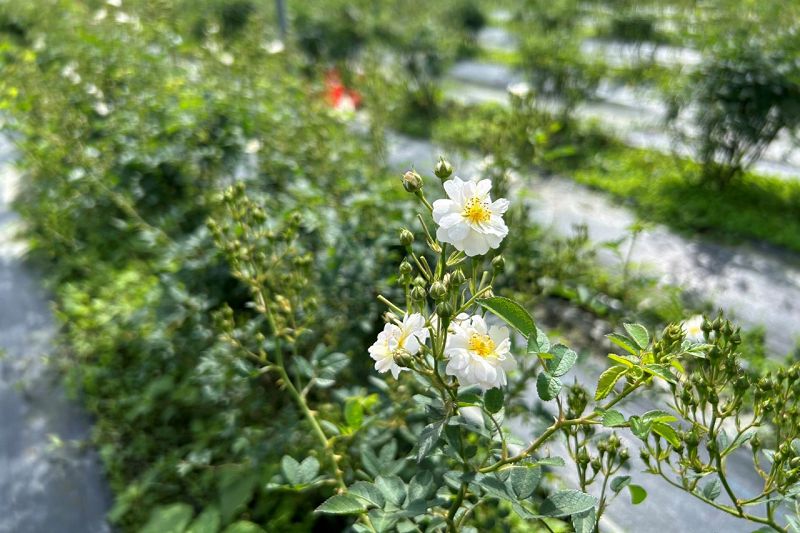 目前,藥草園共種植了十七排的月亮玫瑰,人人都必須放下身段,彎腰禮敬每朵玫瑰花。走在花叢間,宛如繞佛般,身口意業無不念佛、念法、念僧,願以最大供養心,供養一切諸眾生,遵循證嚴上人的教誨,對人事物無不都要虔誠「恭敬修」。