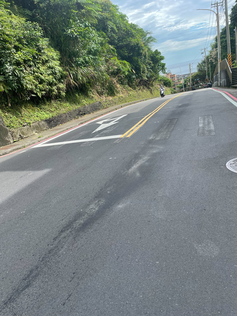 基隆北寧路段路面市公車漏油。(記者江宏志翻攝)