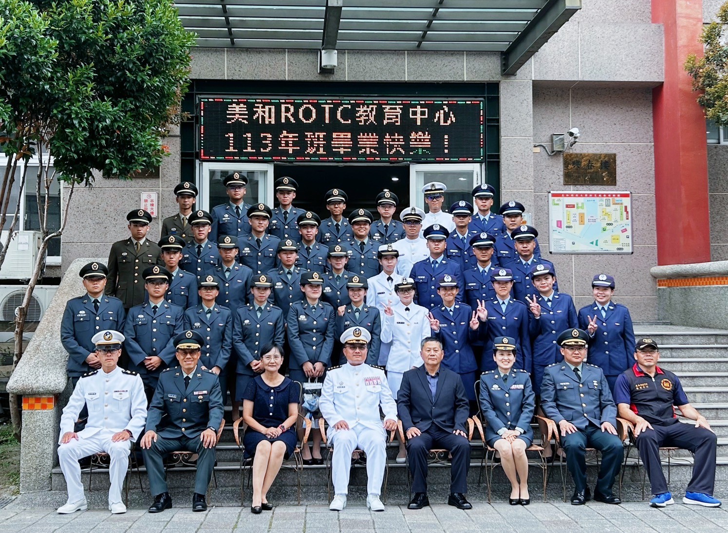 美和科技大學ROTC教育中心日前為該中心113年班畢業學生舉辦畢業典禮,由該校校長王建臺親自主持,除邀請屏東地區軍政首長蒞臨外,150餘位家屬全程見證,進場時螢幕上播放每位畢業生專屬成長影片時,不少家長目睹自己子女的成長與蛻變感動得熱淚盈眶。