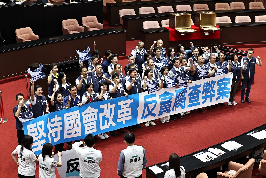 表決結束,傅崐萁率國民黨團成員在議場中高喊陽光國會、民主台灣等口號。台灣民眾黨8席立委也手舉反貪腐、護台灣的標語,在議場合影。