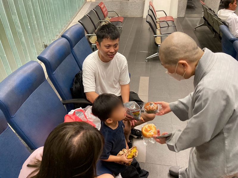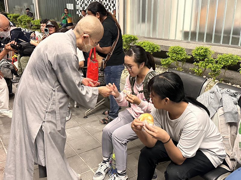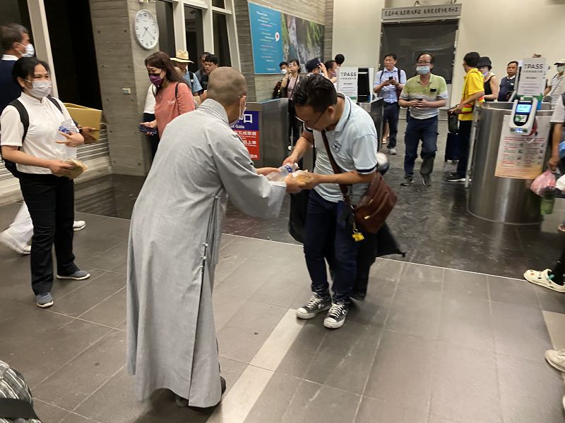 賴郁文提及,抵達新城車站,感恩師父們、清修士和師兄師姊的安心祝福,第一時間滿足了大家生理的需求(麵包、水等食物),又馬上拿到平安吊飾,心理上也受到撫慰,慈濟真的是一股安定人心的力量,也與同車的慈青學長互相勉勵,感恩平安,還可以繼續做慈濟,真好!