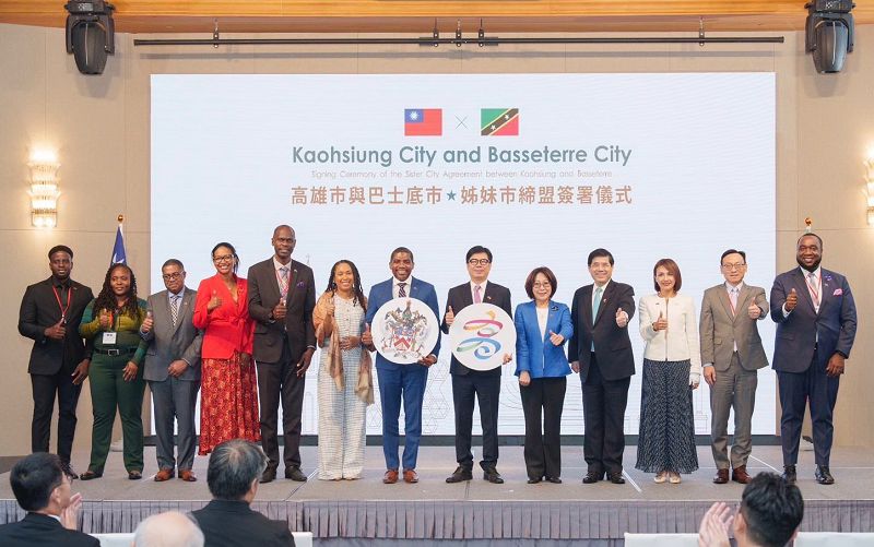 我國友邦聖克里斯多福及尼維斯總理特倫斯‧德魯於6月22日至26日率團來台進行國是訪問,25日到訪高雄,與高雄市長陳其邁會面,進行姊妹市締盟儀式。德魯總理兼任克國首都巴士底市市長,雙方在高雄市議長康裕成、外交部次長陳立國、我駐克國大使林昭宏、克國駐台大使范東亞等人的見證下,簽署「高雄市及巴士底市締結姊妹市協定」。
