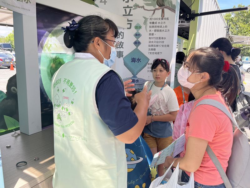現場除安排變裝道具派對等活動表演外,更有約40個攤位讓小朋友進行闖關遊戲,其中,慈濟基金會最具環保行動教育意義的兩列「慈濟行動環保教育車」更成為許多小朋友闖關打卡的熱門體驗區,連嘉義縣縣長翁章梁也特別前往體驗及感恩慈濟師兄姊對環保闖關宣導教育的用心。