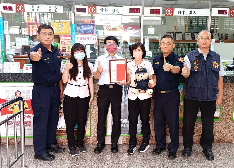 經員警循循善導並陪同張男返家深入訪談,張男遂說出是電話交友的紅粉知己要向其借款,並會指派專人到約定地點取款,聽完張男敘述後,經警方查證確定是一樁「電信交友詐財」詐騙案件,經員警苦口婆心的勸說下,終讓張男打消領款念頭,成功保住民眾財產,即時成功攔阻詐騙案件。日前湖內分局陳楨筌分局長特別到郵局頒發感謝狀,對於主管及行員的機警攔阻詐騙表達謝意。 (圖文:記者李鳴盛)