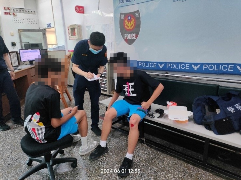 苓雅分局民權路派出所警員劉金城於日前中午備勤時,一名施姓男子民眾至所請求警方協助,稱自己在旁邊路口騎自行車摔倒,造成膝蓋受傷流血,行動不方便,到派出所休息並請警察幫忙通報救護人員到場協助醫治。員警先請施男先至椅子上坐下,見施男膝蓋還流著血便趕緊通知119到場檢查,警方接著詢問施男名字、生日、住址等個資,皆意識清楚可明確告知,警方取得資料後迅速聯繫其母親,在119救護車到場查看初步包紮後送至醫院就醫,施男母親並表示會立即到醫院陪同,非常感謝警察熱心的協助。(圖文:記者張福全)