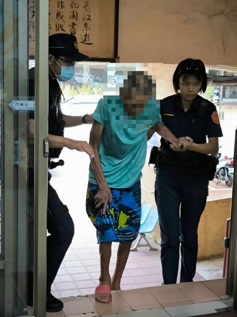 苓雅分局福德二路派出所巡佐林啟源、警員謝旻家日前下午接獲民眾報案,在福德一路有一老翁在店家外不願離去,請求警方到場協助。員警到場後,該店家老闆表示一名老翁疑似身體不舒服,突然走到店家外,老闆詢問該老翁問題卻閉口不答,坐在店家外遲遲不離去。警方詢問老翁身分,惟老翁語焉不詳無法回答,員警方仔細觀察,發現老翁的衣服及褲子接縫有一組手機號碼,便試著撥打電話詢問,所幸電話有人接聽,電話另一頭是老翁家屬,表示會趕緊來接送老翁。警方先將老翁帶返所休息,後續家屬到場,表示老父親有失智的情況,中午獨自離家後就找不到人,幸好接獲警方聯繫,對警方的協助深表感謝。(圖文:記者張福全)