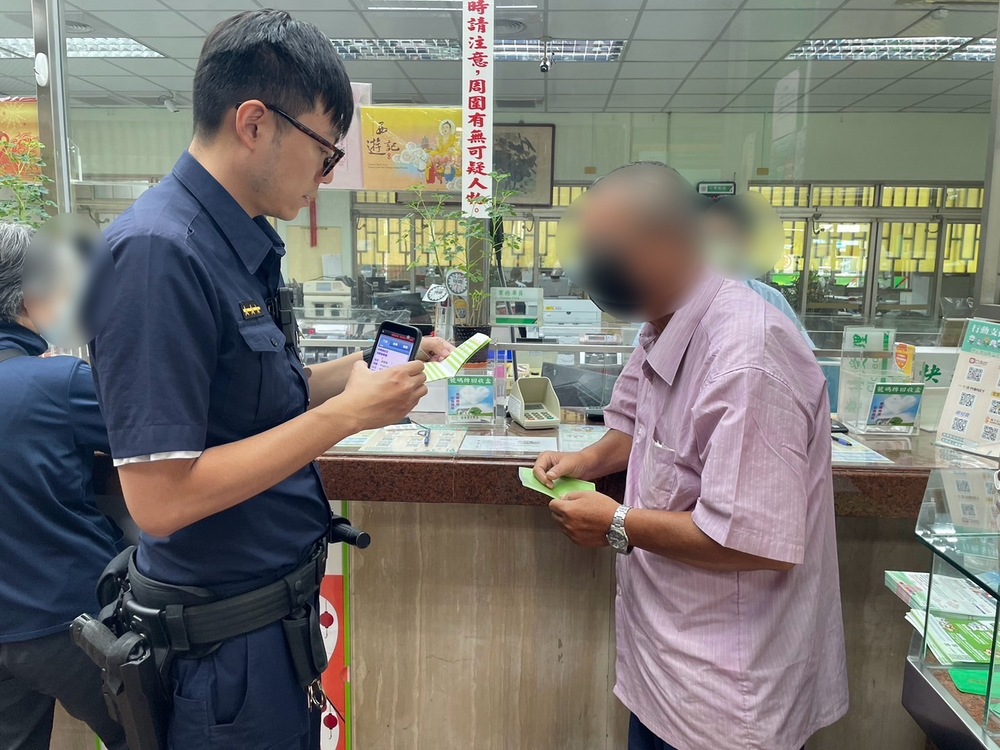 三民二分局民族所警員張仲凱、警員劉是呈日前上午接獲九如一路上郵局專員通報,稱有男子欲申辦網路銀行,而申辦用途不明疑似遭詐騙,請求警方到場。經了解,侯姓男子(64歲)稱在臉書社群認識一位女網友,對方聲稱手邊有高薪工作可以介紹,但須先開立新的帳戶,交由公司申請就業補助使用,之後薪資連同補助款會匯入他的戶頭,惟男子對申辦網銀一竅不通,諮詢時機警的郵局專員察覺有異,擔心男子遭詐趕緊通報警方。警方查看雙方Line聊天訊息發現疑點重重,立即分享諸多詐騙案例苦勸,並告誡侯男勿提供網銀帳戶密碼予不明網友所用,侯男頓時醒悟警覺遭詐,感謝警方及郵局專員即時攔阻其掉入詐團圈套,避免其身陷囹圄。(圖文:記者張福全)