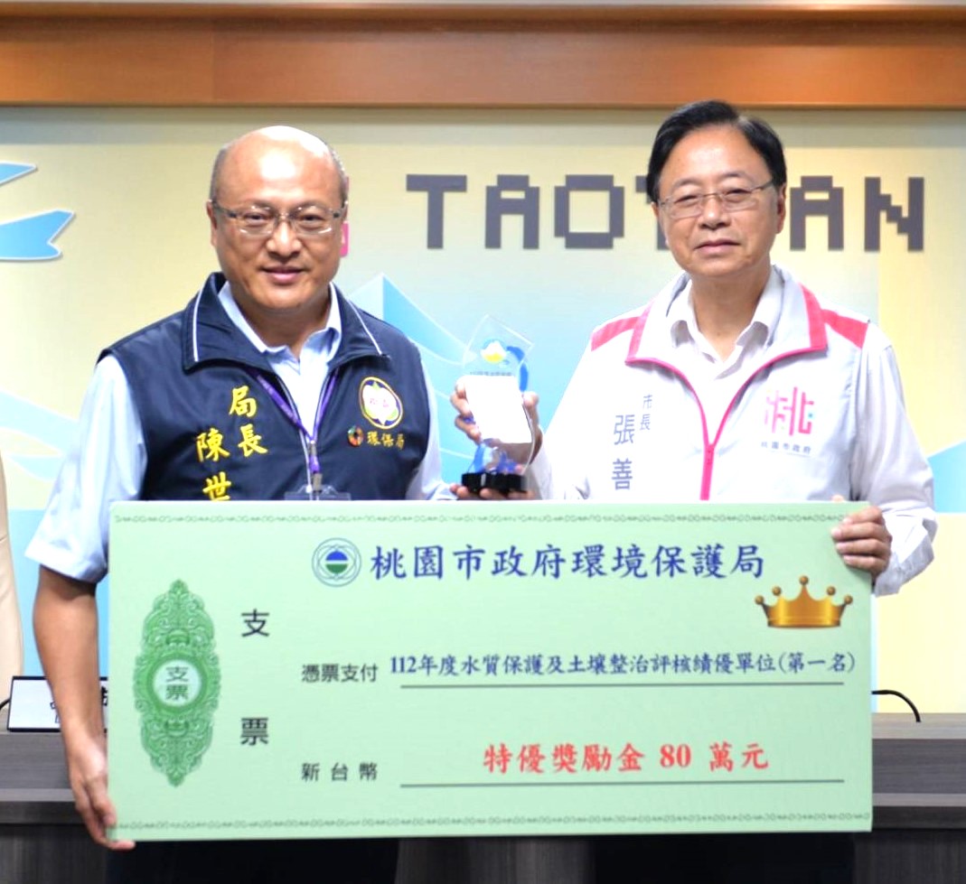 桃園市長張善政表示,肯定環保局在全國環境保護績效考核中脫穎而出,獲得10項大獎殊榮,包括「環境影響評估與環境教育考核」特優、「空品維護與噪音管制績效考核」優等、「水質保護及土壤整治考核」特優、「資源循環考核」特優、「推動因應氣候變遷行動考核」優等、「淨零綠生活考核」特優、「環境測定及綜合業務考核」特優、「垃圾處理及環境管理考核」優等、「毒物及化學物質管理考核」特優以及「環境保護績效考核總成績」特優。尤其在近年來桃園市工商快速發展及人口增長情況下,努力推陳出新的各項環保政策,能深獲環境部的肯定與表揚,值得與桃園市民一同分享與感到驕傲。