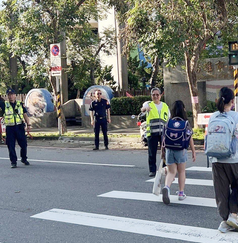 山陀兒颱風造成市區道路滿目瘡痍,6天的颱風連假後,學生開始正常上課,鳳山警分局為維護學童通學安全,除於週一上學前火速清查轄內尚未清除之路樹及障礙物,並與各校方保持聯繫,設置學童上下學安全通道,並於上下課期間強化護童專案勤務,派駐各派出所長與員警在各國小校園前協同導護老師、志工媽媽疏導交通,分局長林俊賢更親自前往鳳西、瑞興等國小護童,協助守護學童安全。分局長林俊賢表示,颱風後首日開學,校園周邊交通流量大幅增加,市容及交通尚未全面恢復,呼籲民眾接送學童上、下學時應留意路況,遵守交通規則,確保通行安全。(圖文:記者于欽智)