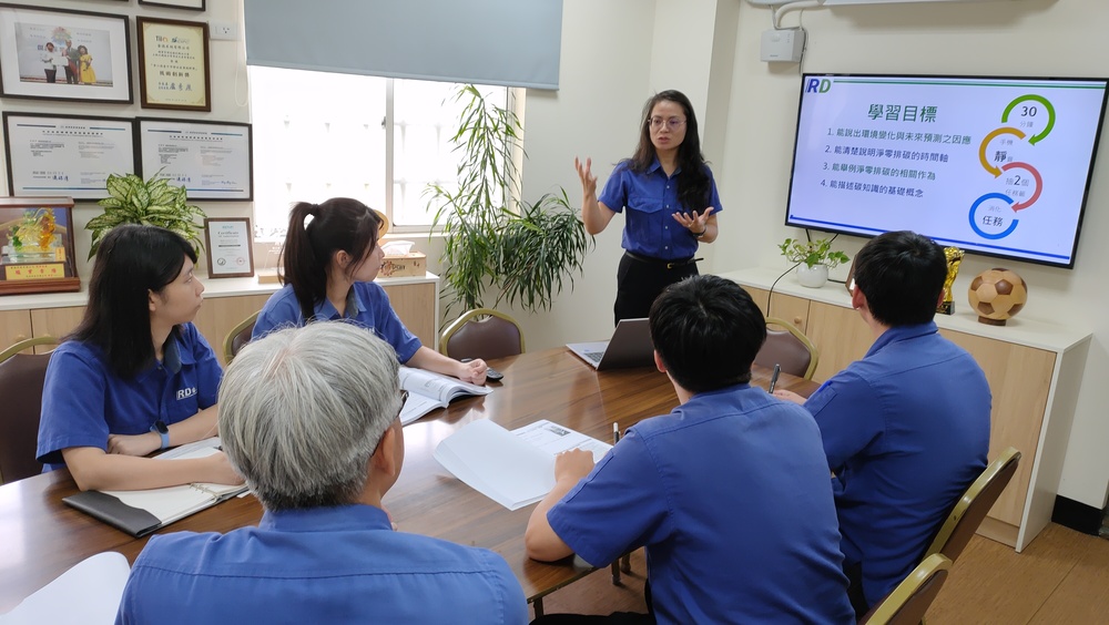 幸運的是,中彰投分署的「小型企業人力提升計畫」提供了專業輔導資源還有訓練補助,公司藉此鼓勵員工參與人工智慧應用、智慧節能與碳排監控等訓練課程,讓這些新手們能快速上手,也成為睿德發展的重要契機。例如陳總經理以身作則參與智慧節能與碳排監控等相關課程,取得ISO 14064-1:2018溫室氣體盤查標準主導查證員資格,並應用於建置廠內電能碳排監控系統。總經理特助曾薰誼受其影響,透過外訓課程成為公司內部培育智慧製造減碳路徑輔導員的內部種子講師,以及專業電控工程師施宗旻則擔任睿德FANUC控制器班種子講師,共同協助提升員工規劃技術,這些努力也順勢帶動業務訂單的流量。