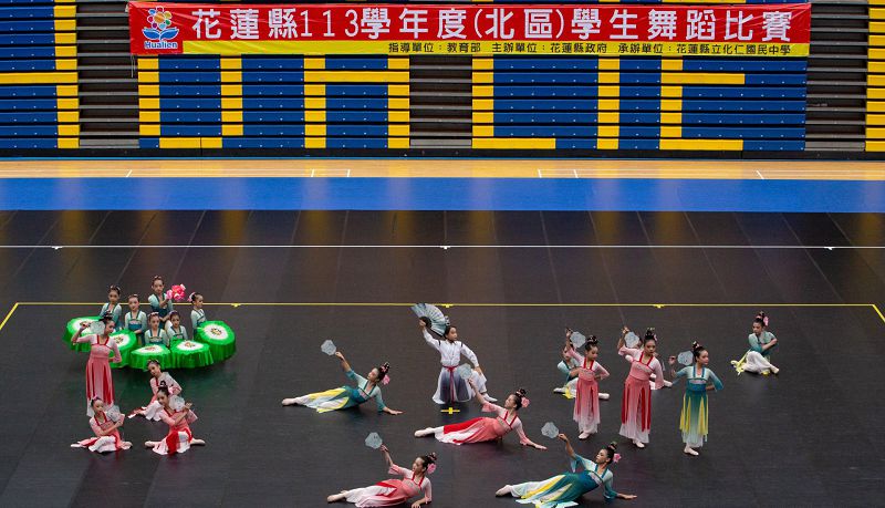 國小部以《花漾弄荷儷人嬌》、《敦煌》兩支舞碼參賽,其中B團體乙組古典舞《花漾弄荷儷人嬌》,是以湖畔的清新景色為背景,透過音樂《唐宮夜宴》的雅韻,描繪出翠綠荷花與靈動少女相互輝映的美麗畫面。三到六年級的孩子們透過優雅的舞姿,展現出古典舞的靈動與韻味,帶給觀眾賞心悅目的視覺享受。