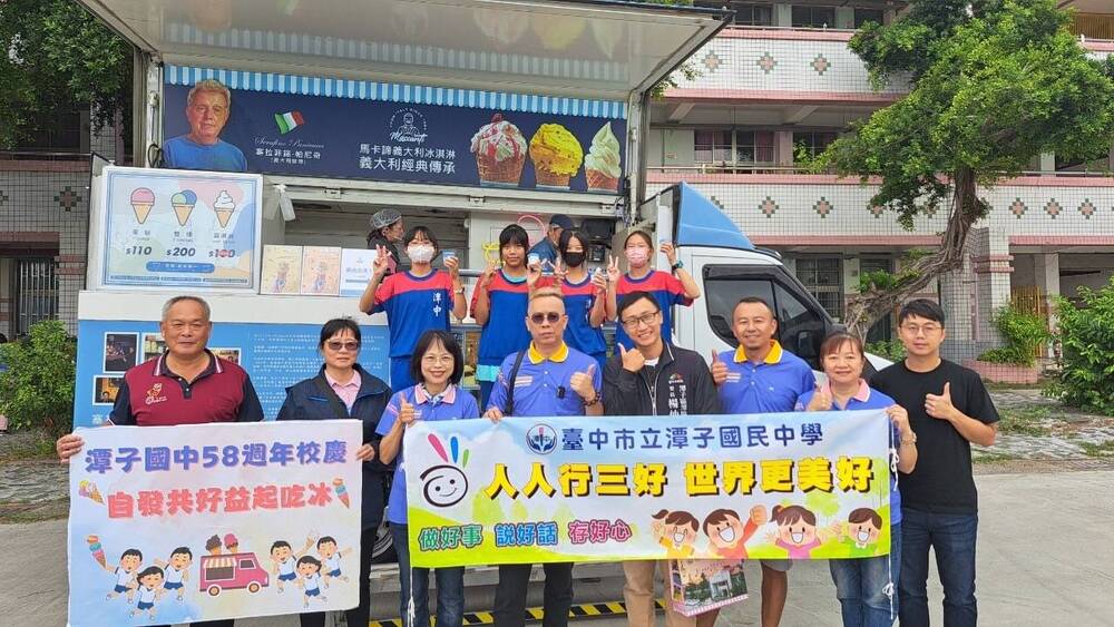 校長劉芹樺表示,潭子國中為三好校園實踐學校,為深耕品德教育與激勵學生學習,特於創校58周年校慶運動會,推出了別開生面的「益起共好享用冰淇淋」活動,邀請幼兒園的師生共同加入,感謝公益冰淇淋列車團隊負責人劉遵恕老師的媒合,及張萱玉老師與峽客清潔王負責人徐力偉老師的協助,為校慶增添了特別甜蜜的氛圍。