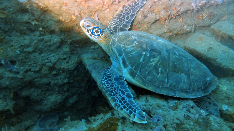 海科館研究人員欣喜的紀錄與觀察,其中有兩頭綠蠵龜,研究人員分別命名大乖和小乖,它們每一年都會出現在潮境,推測應該已經longstay在望海巷潮境海灣,顯然潮境海灣保育區的成效,受到綠蠵龜喜愛。