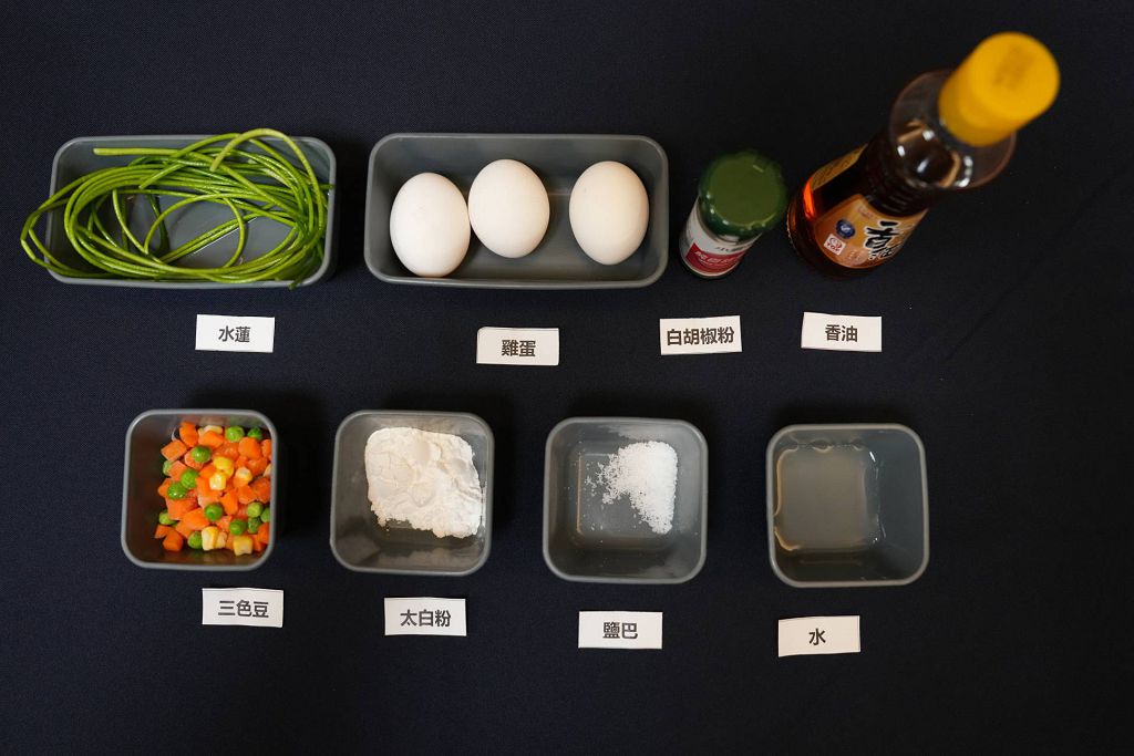 營養師林佩萱表示今年立冬前後,因受颱風影響,菜價起伏不定,漲幅可至平時的10~30%,而冷凍食材的價格相對平穩,若在此時能使用部份冷凍食材,就能減少荷包負擔。以本次所使用的三色豆來說,青豆仁雖屬全榖雜糧類,但其所含的蛋白質量相對較高,因此可作為素食者蛋白質來源的來源之一之一;玉米粒,含有葉黃素、玉米黃素,有助於視力保健;胡蘿蔔, 含有維生素A、β胡蘿蔔素等,除有助於視力保健,也具有抗氧化功能。因青豆仁與玉米粒屬於全榖雜糧類,因此食用時須留意澱粉的攝取量。