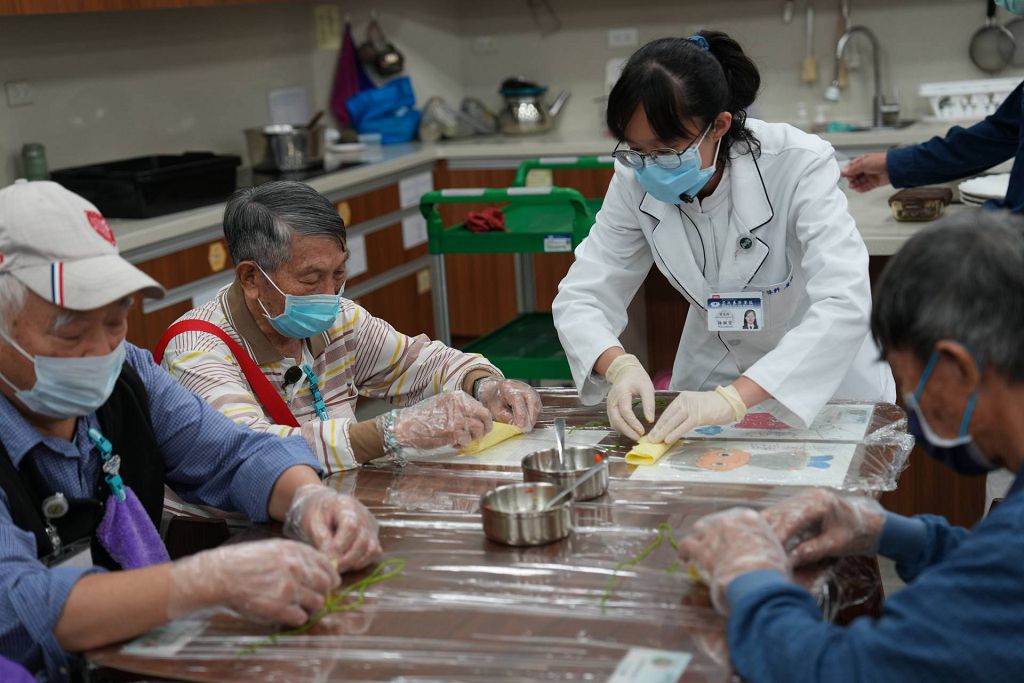 11月7日立冬,花蓮慈濟醫院營養科推出蔬食點心「黃金福袋」,並帶領慈濟同心圓日照中心長者手作「黃金福袋」,同時回顧立冬補冬以食為補、調養健康的習俗,在手作過程,冰冷的掌心也暖了起來,也達到大腦與手眼協調的活動效果。
