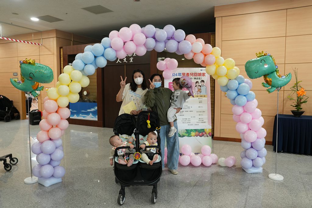 因為新冠肺炎疫情的關係,距離上次早產兒回娘家活動過了快7年,護兒中心護理長張瑞雲說,這次的對象就是這期間出生的寶寶和家長。為了迎接這群孩子,護兒中心團隊8日傍晚就開始在協力樓一樓布置會場,用氣球裝置入口意象、拱門,以及互愛會議室的闖關遊戲布置,為了節省經費,全部都是護理師自己動手作。