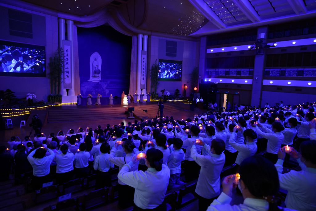此場歲末祝福除現場一千三百多位人參與,全球也有十個國家地區慈濟人與會眾,透過八百多條連線觀看直播同沐法喜,在靜思中感恩。