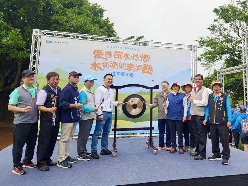 【記者鍾陽正桃園報導】農業部農田水利署桃園管理處為宣傳桃園大圳百年歷史與水資源的重要性,並配合今年大圳通水100週年,日前在觀音區崙坪文化地景園區舉辦「113年年愛鄉、節水、珍惜水資源」健走活動,由處長謝清文主持,邀請副市長蘇俊賓、農水署主秘朱孝恩等人士敲鑼啟幕,吸引4000名民眾無畏風雨開心齊步走,感受桃園的埤塘、水圳之美,守護水資源。