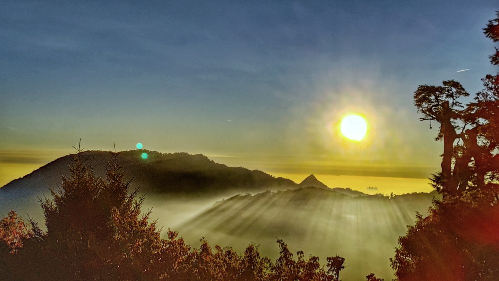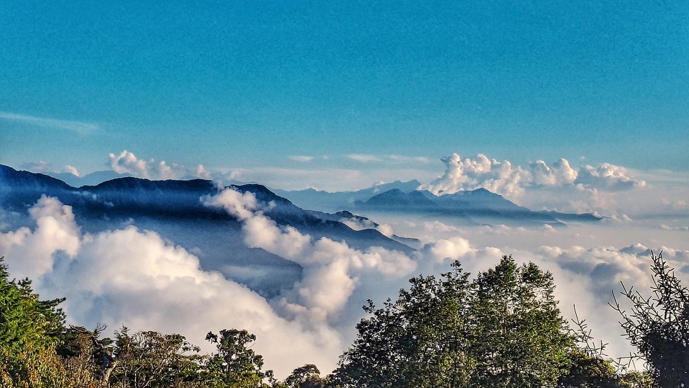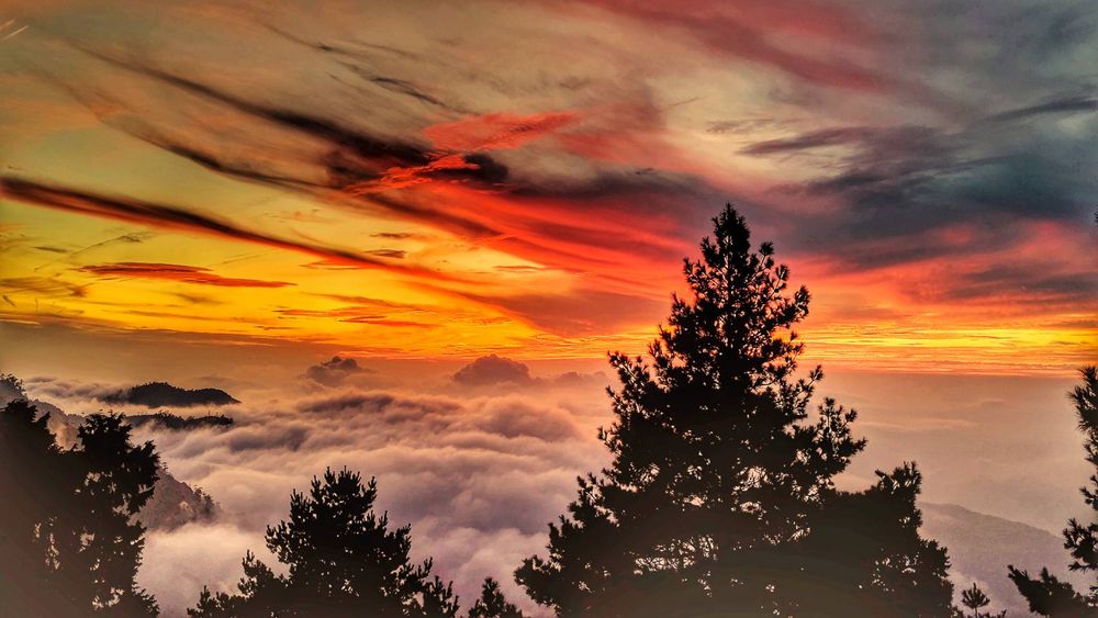 當夕陽斜照在這片無邊無際的雲海上,晚霞的金橘色光芒映照著白雲,宛如仙境般夢幻。日出和日落時形成的雲海五彩斑斕,就像彩色雲海甚是壯觀。每年十月至次年三月是欣賞雲海的最佳時機,此時遊客可盡情享受大自然的鬼斧神工。