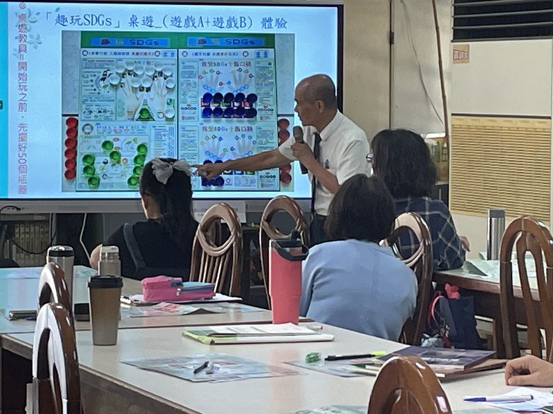 本身也是大南國小的校長,環境教育輔導總召謝世達校長分享:「這場研習的用意,很多夥伴都是第一次聽到淨零綠生活的環境教育,今天來的都是來自嘉義縣海線的國中小教師來參與課程,SDGS環境教育2025年要成為教育課程的主要課程,大南國小準備好了!最近得了很多的環境教育的獎項;慈濟在環境教育不餘遺力的推廣,明年開始會有碳稅,希望大家透過各種機會以環境教育為核心,學校將來會需要很多環境教育的認證人員,所以夥伴的關係很重要,可以認識志同道合的夥伴一起來,希望大家將來不及化為來得及!」