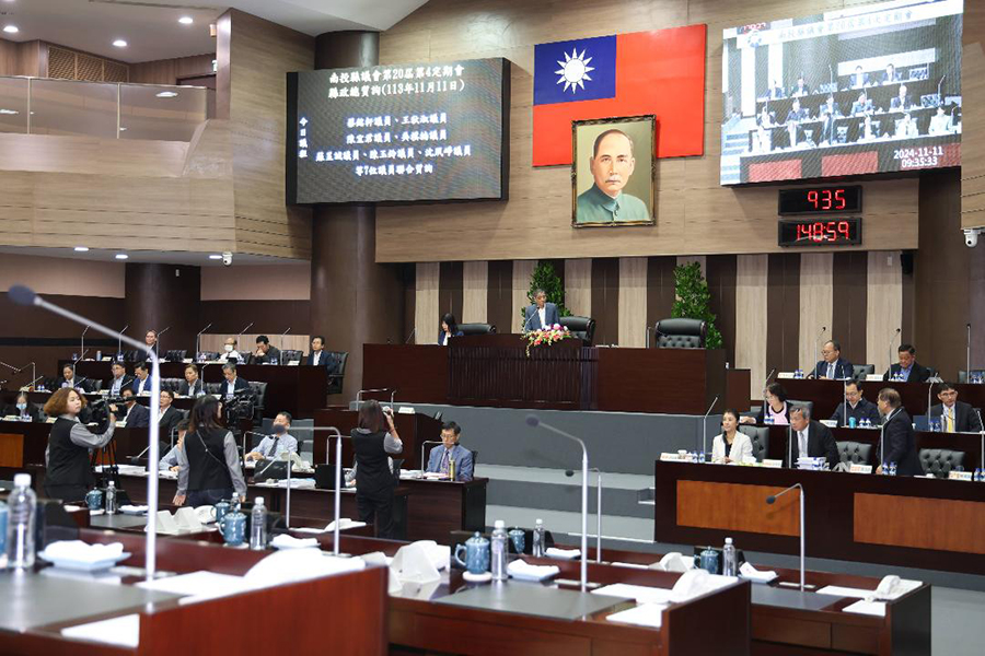 【記者陳良安南投報導】南投縣議會第20屆第4次定期會縣政總質詢,11日由縣議員蔡明軒、王秋淑、陳宜君、吳棋楠、蘇昱誠、陳玉鈴、沈夙崢聯合質詢,可行性評估進入最後階段的南投縣美術館及表演藝術中心成焦點。