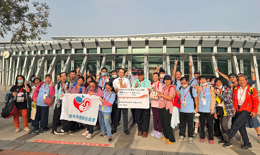 【記者蘇榮泉、雷琇雯雲林報導】高鐵雲林站送關懷,幫助聽障者「搭高鐵.遊台北」!13日「雲林縣聲暉協進會」的成員及志工,在高鐵雲林站的協助下,實現期待已久的台北之旅。出發前,高鐵雲林站林昱宏站長特別送上祝福,希望他們能藉由旅程,開拓視野,留下美好回憶,同時感受社會溫暖。