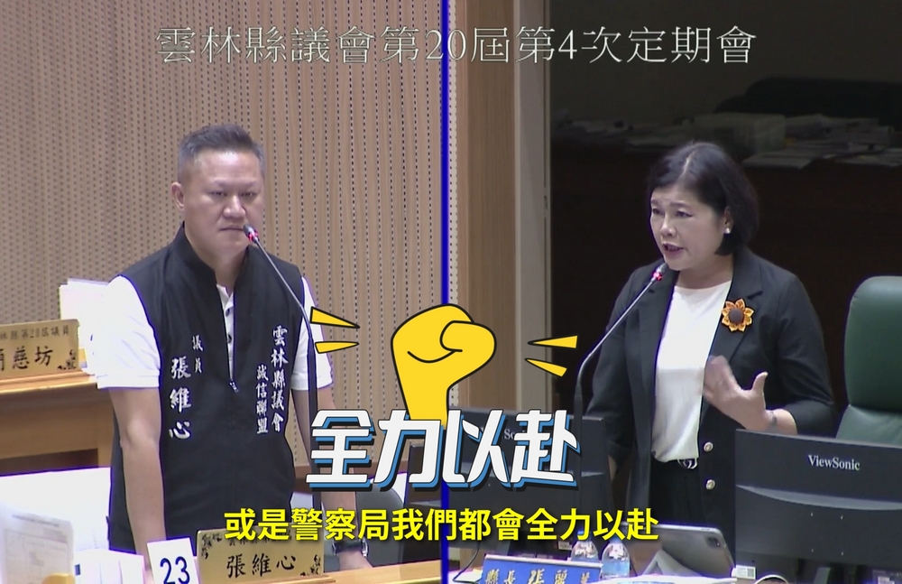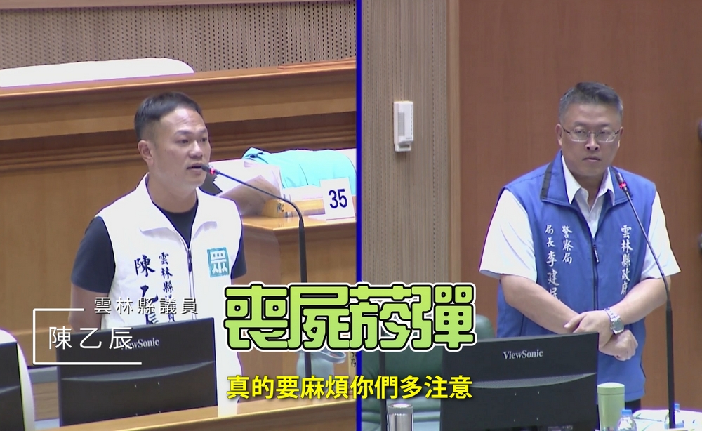 【記者雷琇雯雲林報導】雲林縣警察局首創透過議會總質詢進行反毒宣導,由民意聯盟黨團議員王又民、陳乙辰及國民黨團總召李明哲、誠信聯盟議員張維心、陳永修運用質詢時間,在議會直播平台進行「喪屍菸彈毒品」議題質詢,並請縣長張麗善、警察局長李建民以一問一答方式對鄉親進行反毒宣講,宣示對於校園反毒議題重視,並製成影片,加強推播分享至各鄉鎮市地方社群,擴大宣導成效。