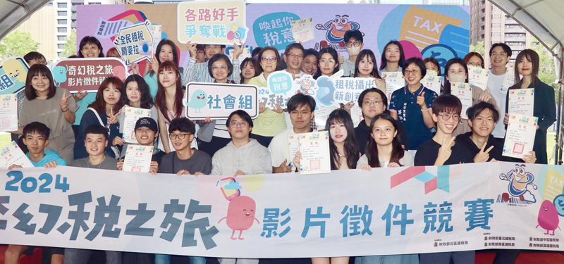 【記者鍾陽正桃園報導】財政部北區國稅局為宣導正確納稅觀念與購物消費索取雲端發票,特結合社群潮流辦理「奇幻稅之旅」影片徵件競賽,並於16日下午在藝文特區桃園市圖書館總館旁空地舉辦「2024奇幻稅之旅影片徵件競賽頒獎典禮暨租稅宣導活動」,由財政部賦稅署副署長陳慧綺、財政資訊中心主任張文熙、北區國稅局長李怡慧、副局長林燕瑜、桃市府地稅局長姚世昌等人逐一頒發獎牌與獎金予獲獎者。