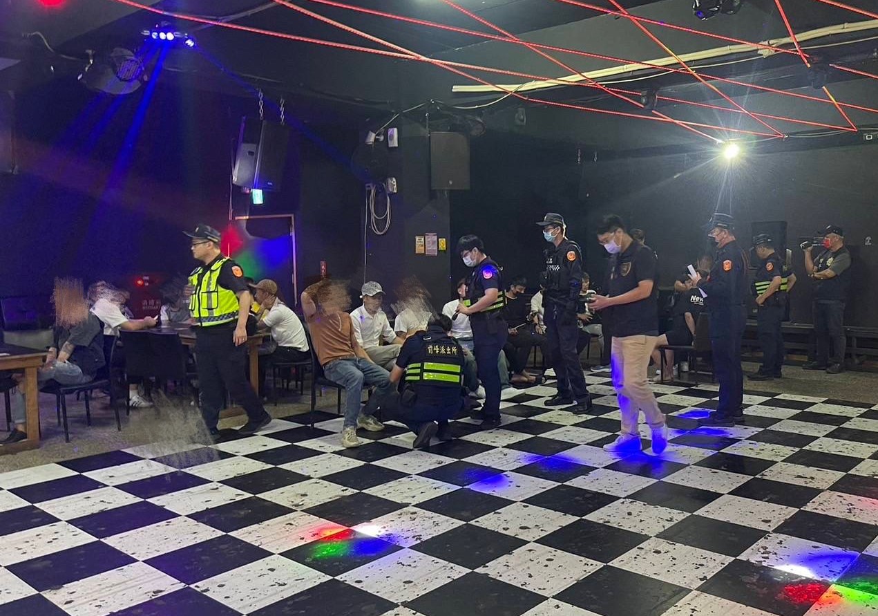 高雄市岡山警分局為維護轄區良好治安,特會同消防局、移民署、毒防局、衛生局等單位執行夜間聯合稽查擴大臨檢勤務,針對轄區聲色場所進行違法掃蕩,並在岡山區中山北路一處舞廳內,查獲8名失聯移工以及4名持有毒品依托咪酯等違禁物,全案依法移送法辦。分局長張偉中指出,失聯移工由移民署專勤隊收容,另消防局檢查該店家設施,也發現消防設備不完備,已依消防法製單裁處,後續將依第三方警政函請經濟發展局命令停業,以阻絕潛在治安問題衍生,未來會持續執行臨檢,清查轄內舞廳、KTV、小吃部等場所,同時呼籲相關業者配合,遇有疑似違法違序案件,務必通報警方查處,以保障民眾安全。(圖文:記者于欽智)