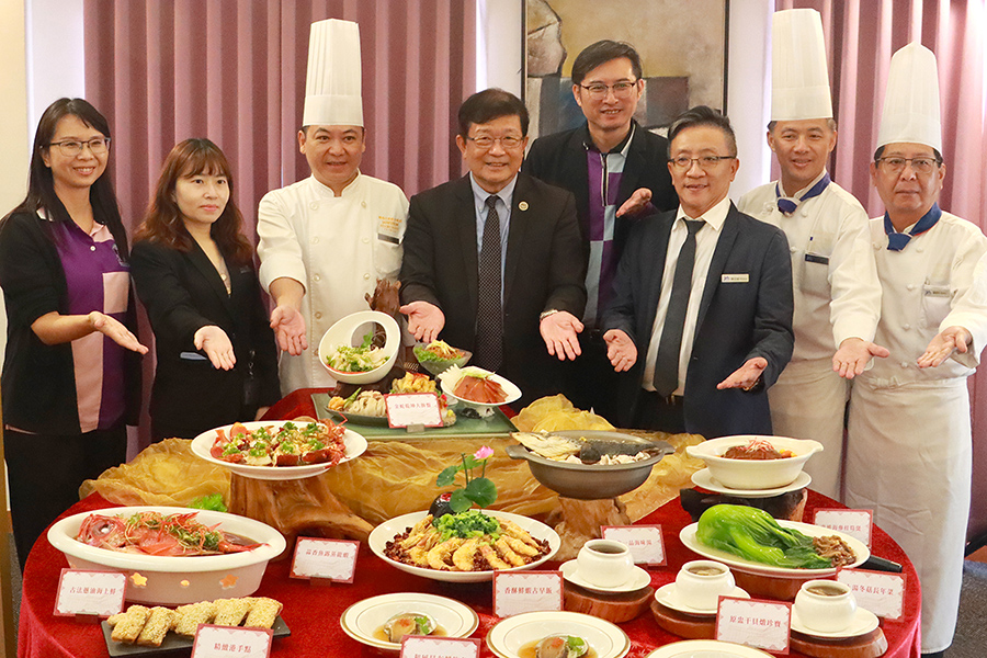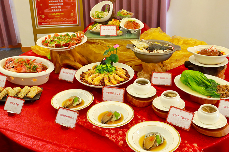 曾慶欑又說,為滿足闔家團圓的需求,今年春節圍爐年菜以10人一桌設計,含甜點及水果共有十道經典佳餚,有象徵年年有餘的「古法蔥油海石斑」,Q彈鮮嫩的口感加上香氣誘人的蔥油,也是超受歡迎的經典菜之一,另外以昆布高湯燉煮的「和風昆布鮮鮑魚」軟嫩口感及昆布高湯帶出的鮮味讓人欲罷不能,用鮭魚頭加上海鮮燉煮的「鮭魚一品海味湯」,看起來霸氣的外觀,實則湯頭濃郁,鮮氣十足,其他還有諸如「金蛇乾坤大拼盤」、「香酥鮮蝦古早飯」、「原盅干貝燉珍寶」、「蒜香魚露蒸龍蝦」、「東坡海蔘桂筍煲」…等每一道都是主廚拿手菜,每桌價格為NT$15,800+10%,現在訂桌,每桌再贈送兩道精緻小菜。