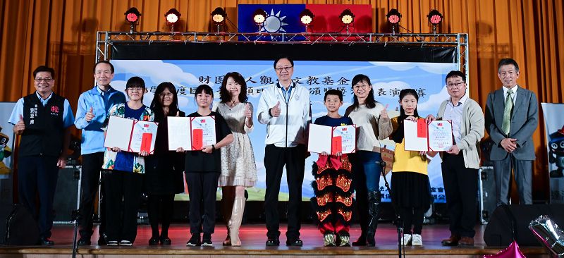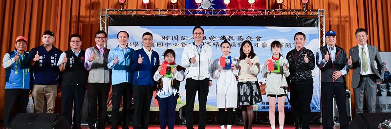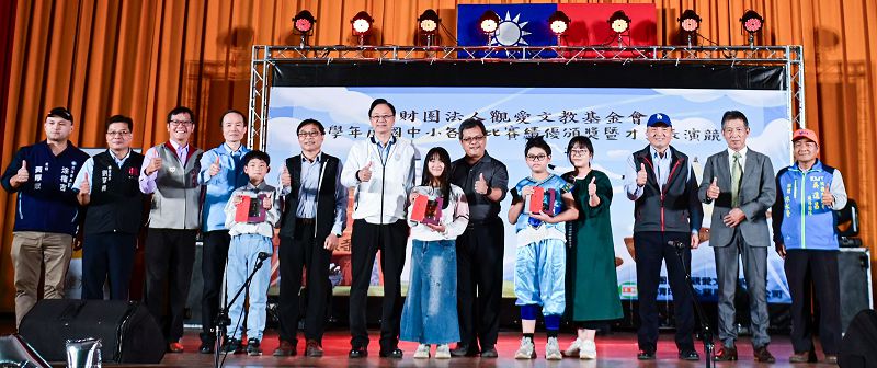 【記者劉國興桃園報導】桃園市長張善政19日上午在市議員許更生、法務部政務次長黃世杰、市府教育局長劉仲成、觀音區長劉草典、觀愛基金會董事長謝仁山、達清環保企業公司董事長戴文斌、觀音國中校長黃博欽等人陪同下,前往觀音區,出席「財團法人觀愛文教基金會113年度國中小比賽績優頒獎暨才藝表演競賽」。