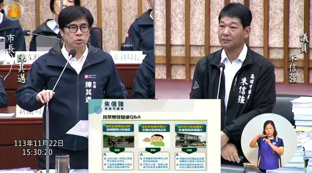 陳其邁答覆,朱議員的建議,會在可行性報告中充分釐清及說明,也請朱議員協尋找殯儀館替代地點;也會請民政局持續與居民,以民眾利益為優先考量。