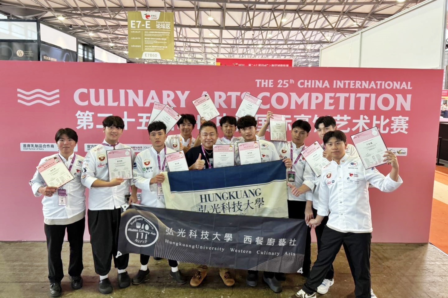 餐旅系老師吳胤瑱、亞歷山大馬瑞執行「技優領航計畫」,培訓及帶領9名大一至大三技優入學學生,到中國上海參加「第二十五屆FHC中國 國際烹飪藝術比賽」。吳胤瑱表示,這個賽事為世界廚師聯合會官方認證的A級最高級國際賽事,學生們表現得可圈可點,拿到1金4銀8銅佳績,其中,大二學生萬明錡及蘇翊閩、大一學生李效賢及周子傑,更是勇於嘗試,一口挑戰兩項比賽。