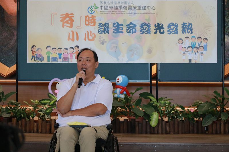 因車禍導致脊髓損傷的陳裕盛分享他對交通安全的認識和復健的心路歷程,他參加彰化脊髓損傷重建協會開設第二專長培訓「金縷藝樹盆景」課程,長時間努力學習後,決定出去創業擺攤,生活自立。取得街頭藝人執照的高淑專則分享逆境中重拾生活的態度,強調傷友要積極面對困難,他獻唱「感恩的心」鼓勵傷友,他說傷友能走出來參加活動,是很大的進步。 中區慈濟脊髓損傷醫療重建中心召集人林英超表示:脊椎重建中心的主要目的是幫助脊髓損傷傷友恢復生活功能和重建生活,包括提供醫療支援、綠色通道友善就醫服務,以及協助嚴重個案進行積極治療。中心協調如泌尿科、復健科、神經外科和骨科等多科室合作,確保傷友能得到全面醫療照護。團隊努力的成果完全展示在感恩活動中,希望讓更多的傷友受益。