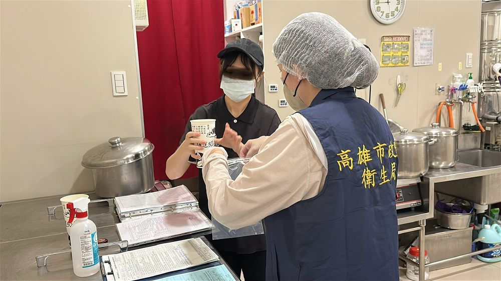 圖說: 針對前鎮區某餐飲業者製售的飲料內,被爆料竟有員工識別證,衛生局1日派員到店稽查。(衛局提供)