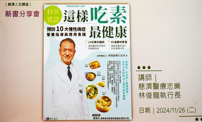 嘉義慈濟診所在診所也推動素食,張堂偉高專表示素食跟葷食者的比較,書中有一個較全面性的實證研究,尤其聽到憂鬱症罹患率會降低,覺得很有興趣,另外腸道菌的部分,最近有聽到很多關於腸道菌會影響很多疾病發生,如果改變飲食這麼簡單的方法就能讓人身體更健康,是一個很有趣的方式,又能愛地球,大家都可以來試試。