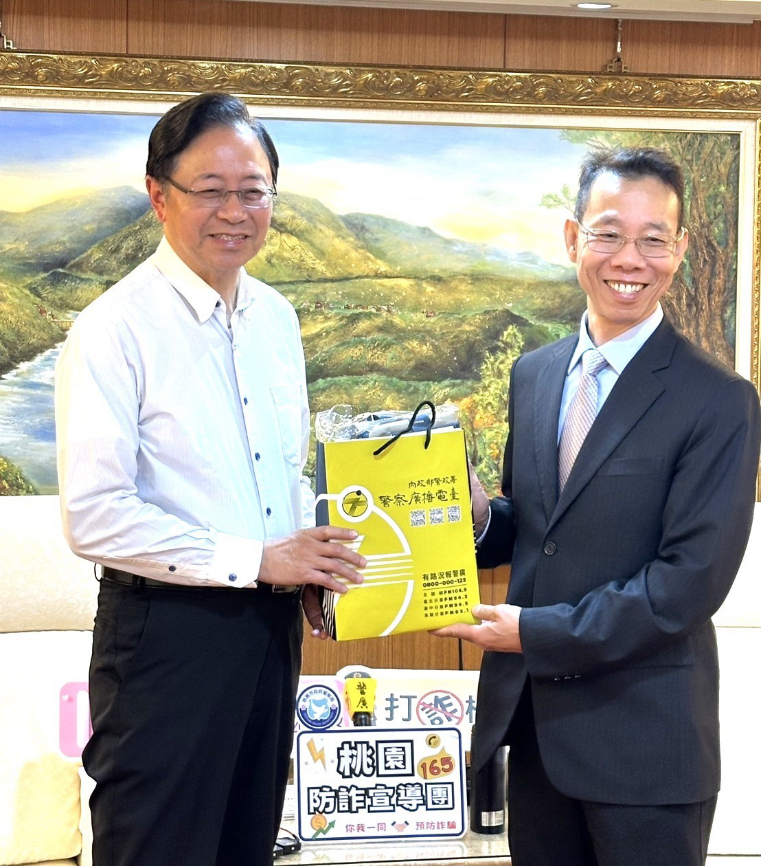 【記者吳惠民桃園報導】為強化防範詐騙意識,提升民眾防詐免疫力,桃園市長張善政與警察局長吳坤旭一同親上反詐騙廣播節目,透過警察廣播電臺向聽眾朋友宣導防詐知識。