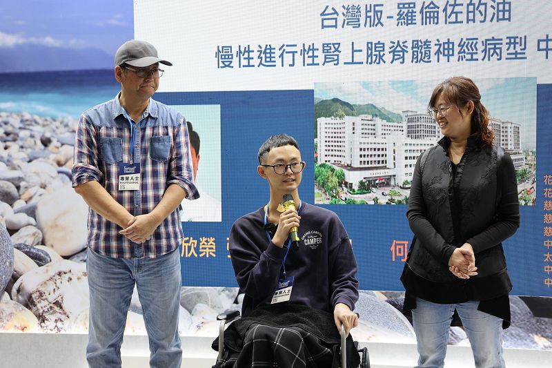 飽受腎上線腦白質失養症折磨3年的涂先生,12月5日,由家人陪伴,從臺中來到台灣醫療科技展花蓮慈濟醫院展位,分享他自3月起接受中西醫精準醫療,原本膀胱無力,排尿、排便困難,胸部以下癱瘓的身體竟逐漸「甦醒」復原。他說「躺在床上,我已經可以像正常人一樣,挪來移去。可以翻身,腰也更有力。連腿部的觸感、痛感都慢慢回來了。特別是大小便也恢復正常,食欲愈來愈好。」
