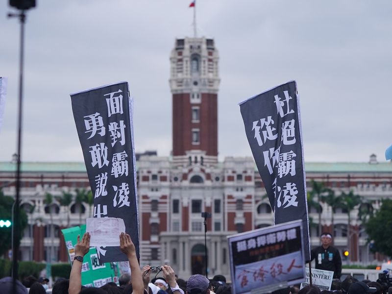 【記者高金次台北報導】勞動部勞發署北分署公務員疑遭霸凌輕生案引發關注,民眾黨7日舉行遊行,高喊制定反霸凌專法、公務員、警消籌組工會、保護吹哨者等訴求,並朝總統府前進、表達心聲。