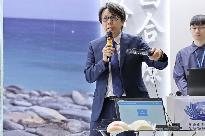 「護理師只要戴上AR眼鏡,搭配口說敘述傷口,AI智能傷檢助理能即時辨識傷口與整合資訊。」現場南臺科大團隊展演AI傷口辨識系統,助理教授陳銘哲表示,團隊藉由擴增實境(Augmented Reality, AR) 智能眼鏡搭配壓力性損傷傷口管理模組,創新實現解放雙手的目標,目前以傷口潰瘍範圍、組織狀況以及損傷等級,進行模組訓練,目前辨識率達到90%。