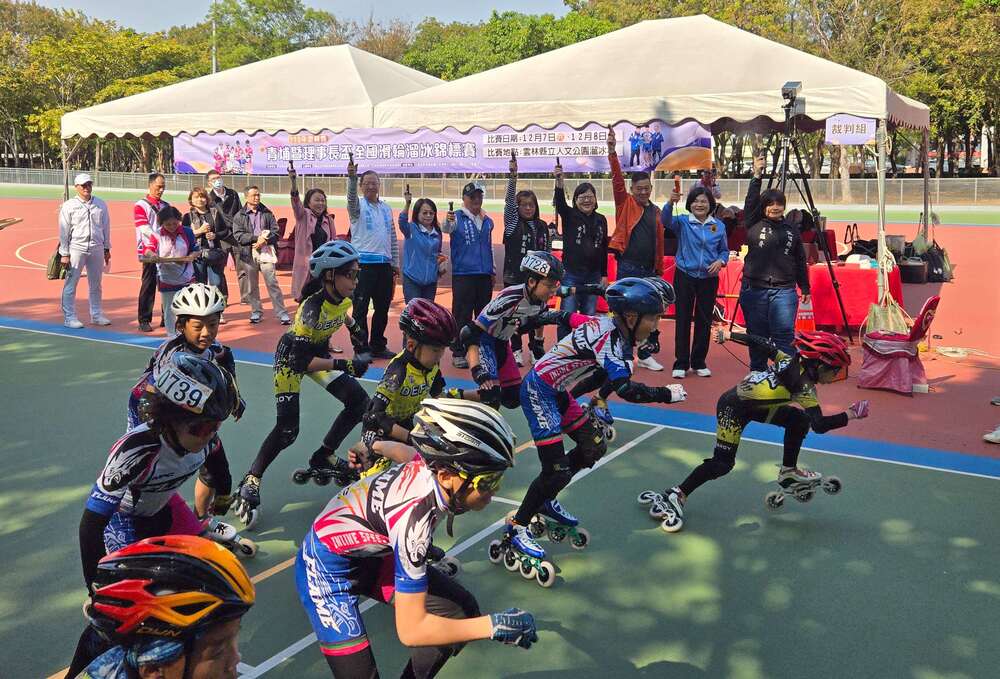 【記者蘇榮泉雲林報導】113年雲林縣青埔曁理事長盃全國滑輪溜冰錦標賽12/7-8在斗六人文公園溜冰場熱烈開賽,吸引666人報名參賽,選手來自各縣市,同堂競技並精進競賽技巧,縣長張麗善、議長黃凱、雲林縣滑輪溜冰運動協會理事長王鈺齊、立委張嘉郡服務處秘書陳誌陽、議員黃美瑤、教育處副處長林慧蓉等8日上午特前往賽場,為選手們加油打氣!