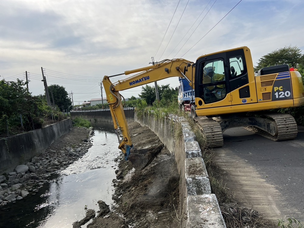 這次清疏工程進場前皆事先與地方里長充分溝通及說明,施工期間部分土方會先暫置渠道旁鋪曬再運離,不影響渠道通洪斷面,以確保區域排水防洪的穩定性。