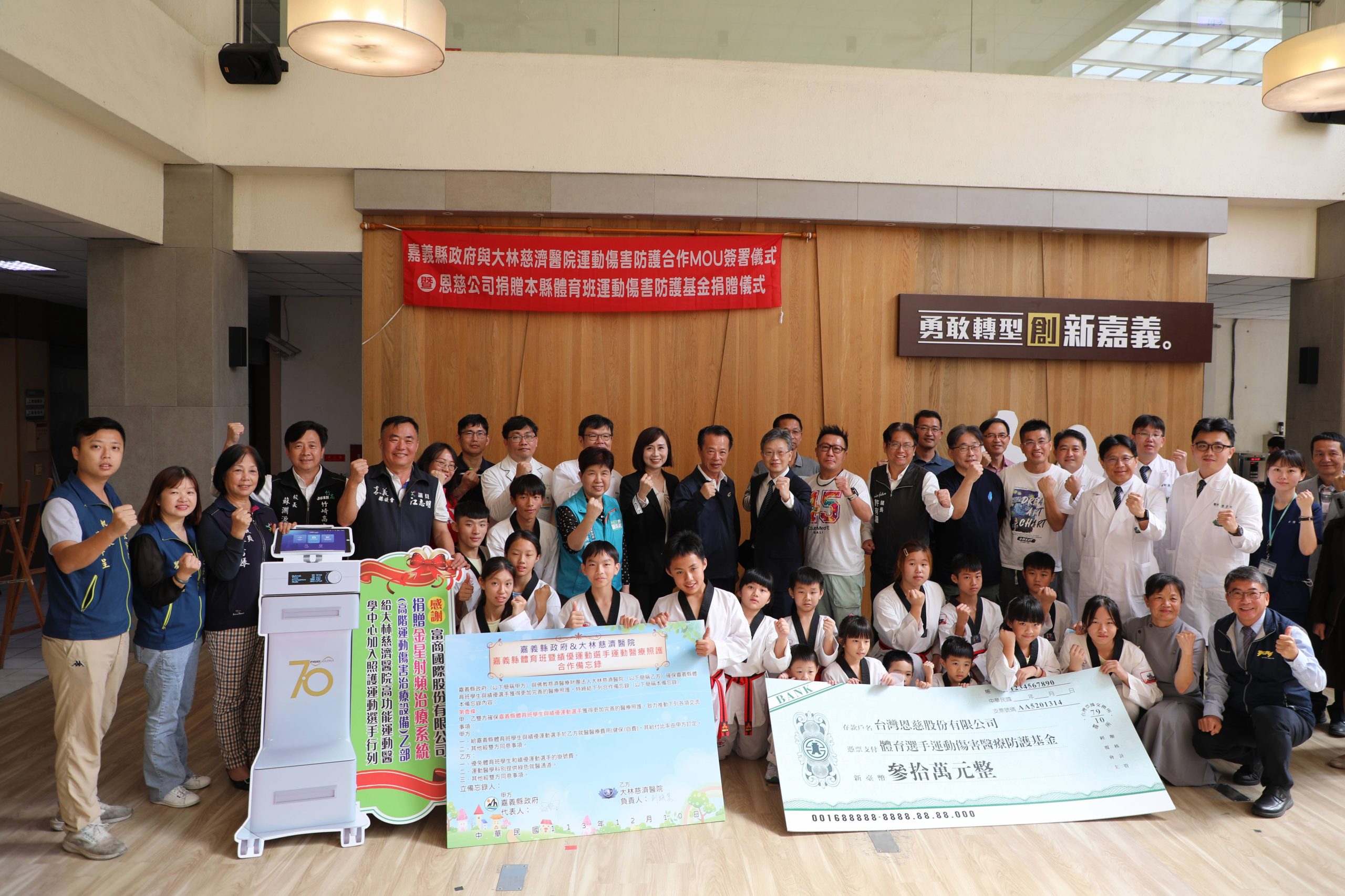 翁章梁說,運動員的健康是我們最重要的資產,感謝大林慈濟醫院、恩慈公司對嘉義縣運動員的支持與捐助,幫助更多運動選手專心訓練,減少運動傷害的風險,並保障他們的身體健康,減少經濟負擔;縣府將持續努力提供運動員更多的支持與資源,這項合作不僅能夠提升運動員的專業能力,也能有效降低因傷病影響而造成的訓練中斷,縣府將繼續與各界合作,為嘉義縣運動員創造更好的訓練條件與發展機會,並為未來的運動事業奠定更堅實的基礎。