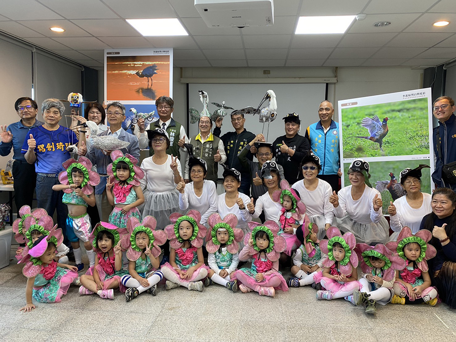 在台南市西明社區發展協會理事長王美雲領軍表演熟齡黑琵展翅翱翔,市立學甲幼兒園園長顏春枝率領一群小朋友跳舞等,由美麗的黑面琵鷺表演為「黑白」與「彩色」攝影展、「鋁罐黑琵藝術」作品展行前記者會揭開序幕,包括交通部觀光署雲嘉南濱海國家風景區管理處長許宗民、農業部生物多樣性研究所七股中心主任洪夢棋、立委林俊憲特助林鴻志、郭國文特助黃熙順、陳亭妃秘書黃佩菁、市議員謝舒凡、陳昆和特助王俊傑、方一峰秘書李寶桐、蔡秋蘭秘書黃福得、七股區公所秘書黃瑞琳、市府農業局森林及自然保育科長朱健明等貴賓都出席。台南市生態保育學會理事長邱仁武介紹黑面琵鷺文創作品作者,並且表示歡迎大家來台南看黑琵。