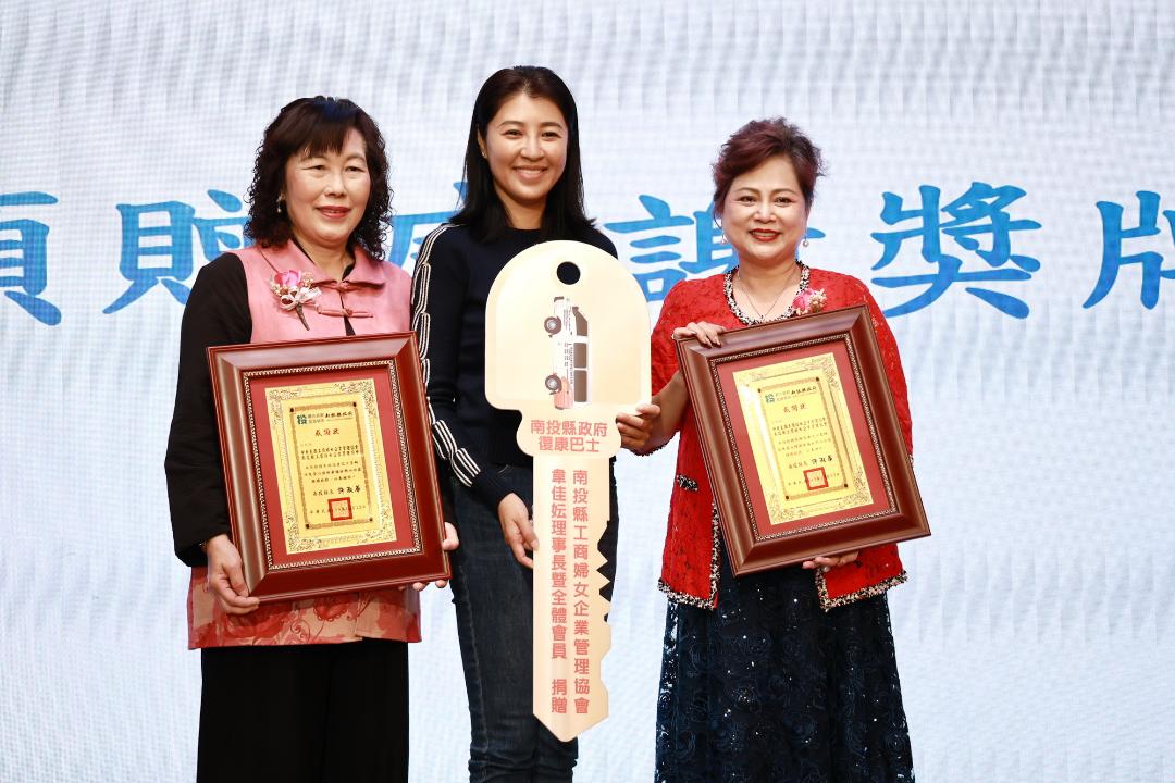 許縣長特別感謝中華民國工商婦女企業管理協會與南投縣工商婦女企業管理協會,共同捐贈一台復康巴士協助縣府辦理交通接送公共服務,縣府將會妥善運用,提供行動不便身心障礙者及長輩,更安全方便的福利服務。