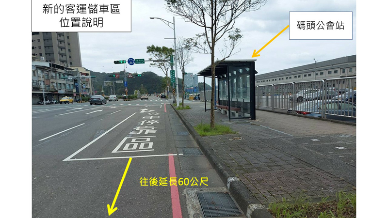 交通處處長王圳宏指出,基隆轉運站啟用後,市府持續滾動式檢討站體內、外部相關設施及運作狀況。希望降低客運儲車區對於港西街交通、環境品質及居民造成之影響,因此規劃於中山一路往北方向(「碼頭公會」公車站到「民治平交道」原址間)新設客運儲車區,長度約為六十公尺,可同時停放四、五輛大型車,作為國道客運及市區公車等候發車之空間,且不致影響現行公車行駛動線。