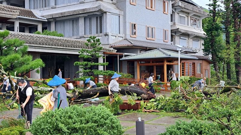 十一月一日一早,精舍仍處於停水停電的狀態,同仁與志工們一早即捲起衣袖、踏起腳步,協助常住師父們清理精舍周圍環境。