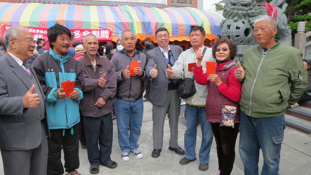 昨天早上10時,侯永都社會福利慈善事業基金會在北門區二重港仁安宮舉辦連續第14年的冬令慰問活動,基金會創辦人侯博明在前台南市議員侯澄財、學甲區長張明寶、將軍區長許博森、北門區文山國小校長楊鎮鴻等人陪同下,一同發放慰問金,善行義舉受到大批鄉親熱情歡迎。