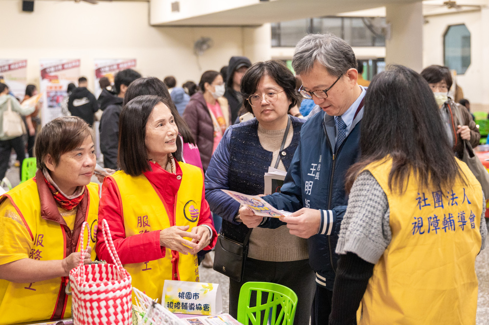 【記者吳艾芸桃園報導】桃園市副市長王明鉅14日上午在市府教育局專門委員林淑芬、桃園區副區長邱創正、桃園市立桃園特殊教育學校校長葉瑞華、南崁高級中等學校校長陳家祥、大園國際高級中等學校校長朱元隆、清華高級中等學校校長張玉平、中華民國學習障礙協會理事長劉永寧、桃園市視障輔導協會理事長黃婉瑜、桃園市腦性麻痺協會創會理事長何麗梅等人陪同下,前往桃園區出席「114學年度身心障礙學生適性輔導安置宣導博覽會開幕式」。